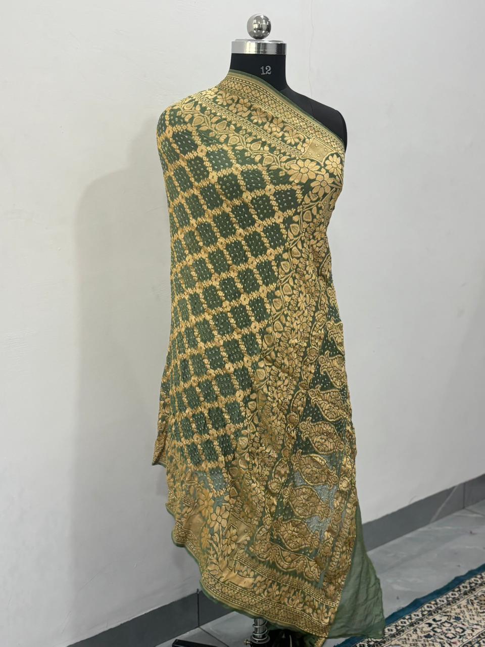 Our Sea Green Neem Jari Janglo Dupatta in Georgette is a stunning accessory that combines the calming beauty of sea green with intricate Neem Jari Janglo embroidery. The delicate nature-inspired motifs and patterns are crafted using shimmering silver and gold threads, adding a touch of opulence to the lightweight Georgette fabric. The dupatta drapes elegantly, offering comfort and style for any occasion. Whether paired with traditional or modern attire, this dupatta enhances your look and brings an element of sophistication to your ensemble.