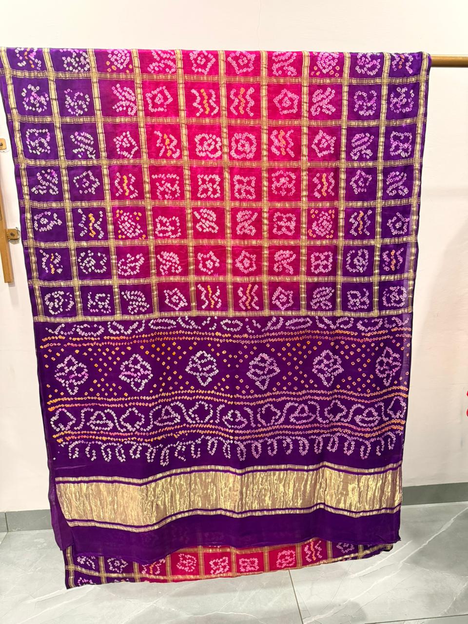 Our Maroon Gharchola Checks Saree in Gajji Silk is an exquisite piece showcasing the elegance of traditional Indian craftsmanship. Crafted from smooth Gajji silk, this saree features classic Gharchola checks in a rich maroon hue. The intricate design includes gold and silver zari work, adding a touch of opulence and depth to the overall pattern. The saree drapes gracefully, offering a comfortable fit and luxurious appearance. Perfect for weddings, festivals, and special occasions, this saree pairs beautifully with traditional jewelry for a sophisticated ensemble